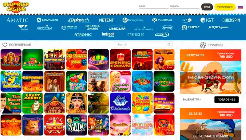 NetEnt, Igrosoft, Novomatic, Belatra, Yggdrasil Gaming, Playtech, Microgaming (Quickfire), Amatic, Aristocrat, EGT, IGT (WagerWorks), Wazdan, Apollo Games